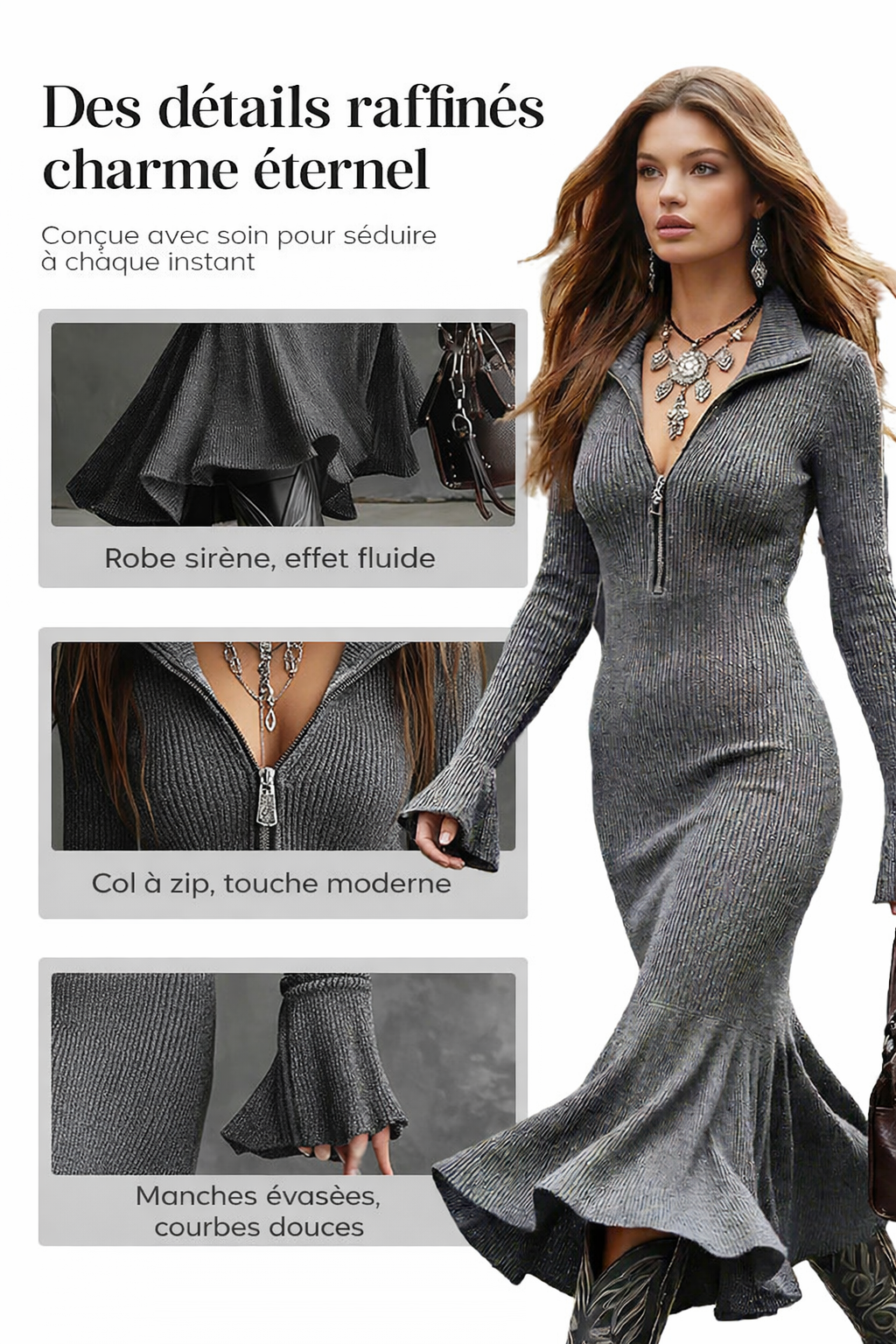 Luna | Robe sirène élégante à manches larges et fermeture éclair
